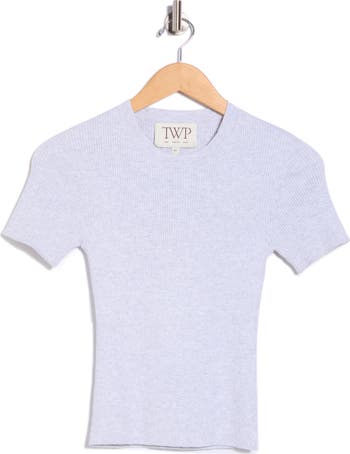 A rib-textured knit delivers a cozy feel to a short-sleeve top with a figure-skimming, stretchy fit.