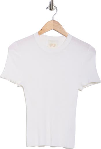 Transition between seasons with this ribbed short-sleeve sweater knit from soft wool yarns.