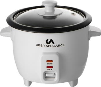 This counter top rice cooker features an easy-to-use single switch control and see-through glass lid with a stay cool knob.