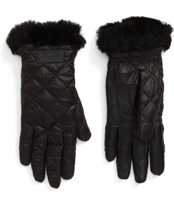Stay connected no matter the weather in these touchscreen-compatible, quilted all-weather gloves trimmed with cozy, genuine shearling cuffs.