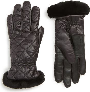 Stay connected no matter the weather in these touchscreen-compatible, quilted all-weather gloves trimmed with cozy, genuine shearling cuffs.