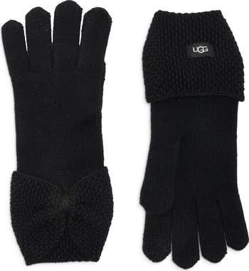 A soft wool blend pair of gloves with tech styling are finished off with a femininely chic bow finish.
