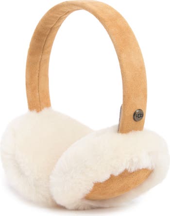 Soft suede earmuffs are detailed with cozy genuine shearling to keep you warm.
