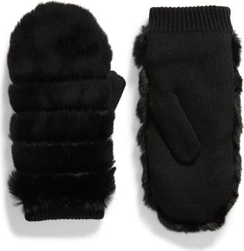 Plush faux fur and channel quilting make these knit mittens a luxurious addition to your winter ensemble.