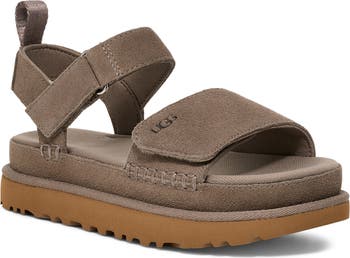Heat-embossed logos lend signature detail to a suede platform sandal crafted with a plush SugarSole EVA sole for comfort under each step.