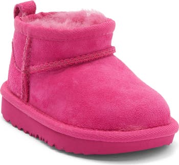 Kids can enjoy the cozy softness of this abbreviated version of a classic UGG boot boasting an ultrashort shaft. The style delivers extra comfort with a lining crafted from UGGplush, a moisture-wicking textile made from a wool-rich blend but crafted to feel and wear like genuine shearling.