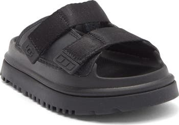 Adjustable hook-and-loop straps perfect the fit of this kid-sized slide sandal set on a superlightweight and springy platform sole.