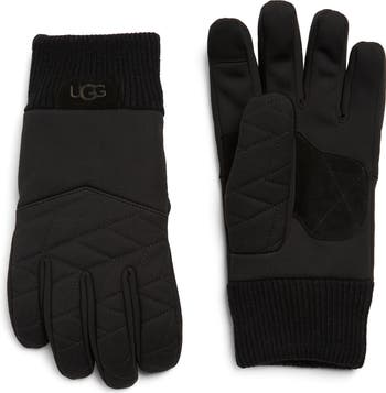 A leather palm brings a grippy design to this pair of quilted nylon gloves lined with a wool-blend for coziness.