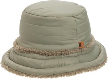 Double your cold-weather accessorizing options with this one bucket hat that reverses from a quilted design to plush UGGfluff fleece.