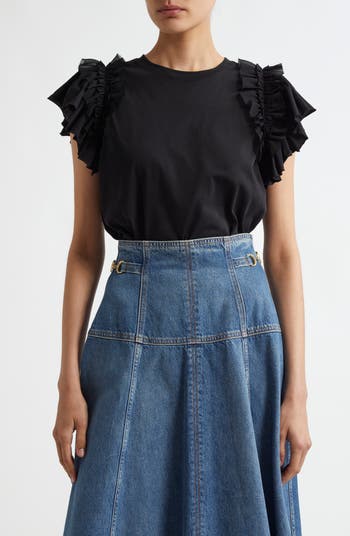 Dramatic tiers of frothy ruffles artfully frame this classic crewneck top made from soft organic cotton.