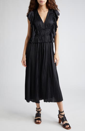 Letty Ruffle Detail Pleated Satin Dress