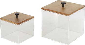 Add an eye-catching element to your space while storing your bits and bobs in this set of acrylic boxes that feature natural wood lids.