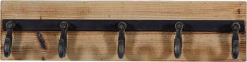 Organize your entryway with this wood wall hook featuring sturdy iron hooks that easily hold your keys, coat or bag.
