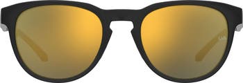 Tinted lenses and a classic round profile define these streamlined sunglasses subtly branded with signature logos at the temples.