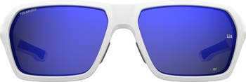 Sporty style meets everyday comfort in these rectangular sunglasses featuring gradient lenses with polarized clarity.