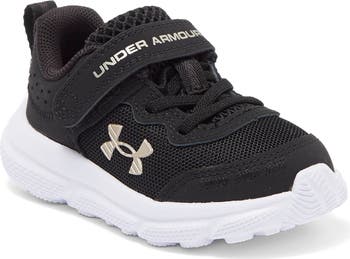 Keep your little one's feet comfy in this cushioned sneaker featuring elastic laces, a hook-and-loop strap, a padded collar and white grip sole.