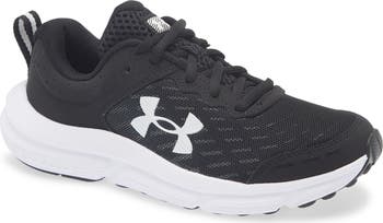 A cushy, shock-absorbing sole puts bouncy energy under every step in a kid-size running shoe with sleek stying perfect for the playground.