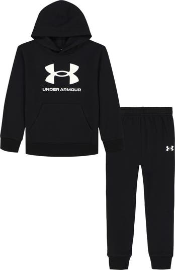 Lightweight fleece made with breathable cotton brings all-activity comfort to a coordinated hoodie and joggers set that keeps up with your kid at playtime and down time.