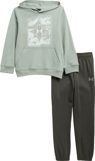 Lightweight fleece made with moisture-wicking technology brings all-activity comfort to a coordinated hoodie and joggers set that keeps up with your kid at playtime and down time.