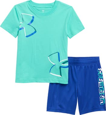 Big on comfort and bold on style, this jersey T-shirt and shorts set featuring signature branding is a go-to for nonstop fun.