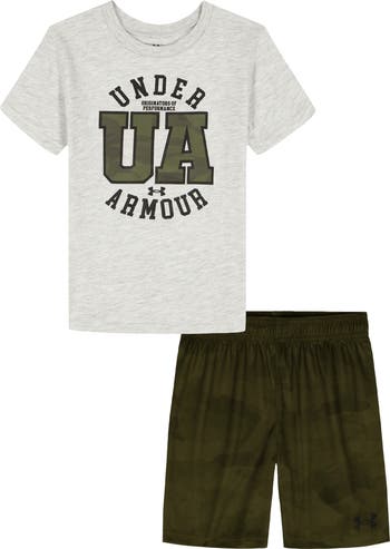 With quick-drying fabric that wicks away moisture, this sporty set includes a short-sleeve t-shirt and pull-on shorts that are made to keep active kids cool and comfortable.