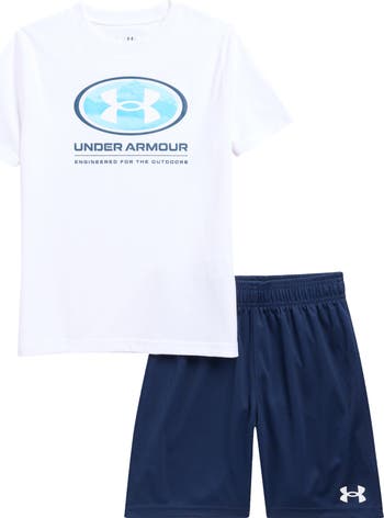 Big on comfort and bold on style, this graphic T-shirt and shorts set featuring signature branding is a go-to for nonstop fun.