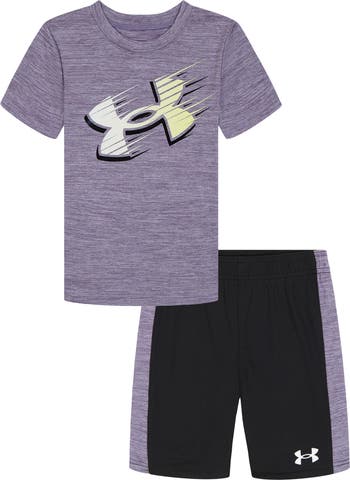 Big on comfort and bold in style, this moisture‑wicking T‑shirt and shorts set features signature branding for a go‑to look made for nonstop fun.