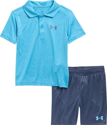 Your sporty kiddo will be looking fly on and off the green in a preppy polo and shorts set made from lightweight woven fabric and done in a relaxed fit so their swing stays strong.