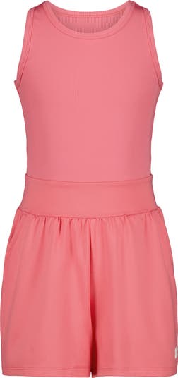They'll love to stretch and sweat in this romper made from lightweight, stretchy ribbed fabric.