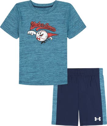 With quick-drying fabric that wicks away moisture, this sporty set includes a short-sleeve t-shirt and pull-on shorts that are made to keep active kids cool and comfortable.