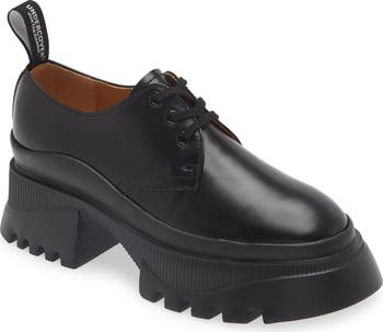 A wavy welt and textured platform sole with deeply carved tread bring an assertive look to this plain-toe derby crafted in Japan from burnished leather.