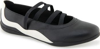 A quartet of elasticized vamp straps furthers the ballet-inspired styling of this faux-leather sneaker fitted with pillowy memory foam cushioning.