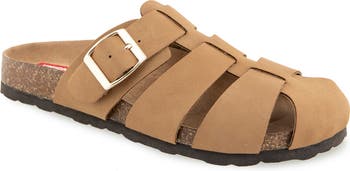 Pillowy memory foam cushioning ensures all-day comfort in this faux-suede sandal grounded by a cork-like sole.