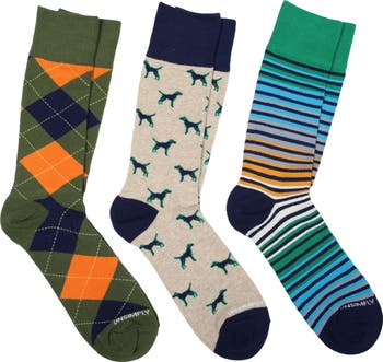 Show off your bold personality with this trio of crew socks that are designed with comfortable cotton-blend stretch and come in an assortment of fun patterns.