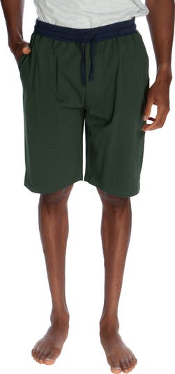 Keep it casual in easygoing comfort sporting these lounge shorts topped with a contrasting elastic waistband.