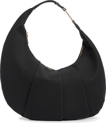 Gleaming hardware and front pleats deliver a subtle polish the casual hobo silhouette of this shoulder bag with a multi-pocket interior to keep your keys, tech and valuables organized.