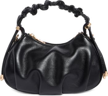 A scrunched top handle brings modern dimension to this slouchy crossbody bag made from soft faux leather.