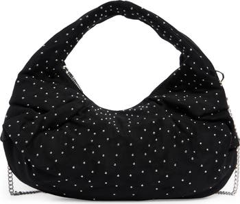 Gleaming studs punctuate a rounded hobo bag with a slouchy silhouette and rendered in buttery faux suede.