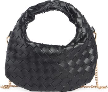 A knotted shoulder strap and optional chain strap outfit this woven faux-leather shoulder bag that's perfect for everyday use.