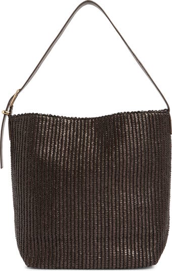 Bring sunny-day vibes to your look with this woven straw shoulder bag framed by a smooth faux-leather strap and base.