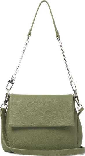 Richly pebbled vegan leather shapes an everyday crossbody bag fitted with multiple compartments and removable straps for optimal versatility.