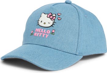 A winking Hello Kitty brightens the front of this five‑panel denim cap perfect for keeping your kiddo cool and cute all-day long.
