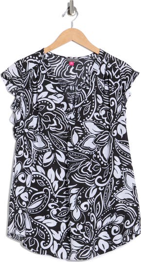 This V‑neck top features ruffled cap sleeves and a loose, flowy silhouette for an effortlessly airy feel.