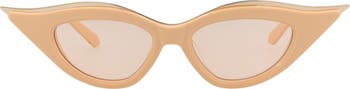 Make a dramatic, modern statement in these angular cat-eye sunglasses complete with polished logo lettering at the temples.