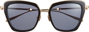Striking and oh-so-glam, these cat-eye sunglasses with pyramid-studded bridge and temple accents are made for the spotlight.