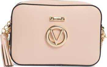 Gleaming VLOGO hardware adds brand-signature shine to a structured camera bag crafted in Italy from smooth leather.