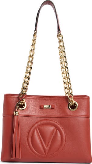 An embossed VLOGO emblem adds a luxurious flourish to this chain-handle tote bag crafted in Italy from smooth leather.