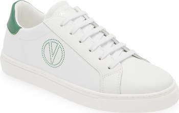 The brand's logo and a contrasting collar define a low-top sneaker shaped from smooth leather and secured with a classic lace-up closure.