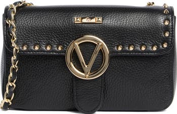 Gleaming VLOGO hardware adds brand-signature shine to a structured crossbody bag crafted in Italy from smooth leather.