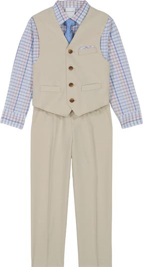 Get them event-ready in no time with this sharp set that includes a button-up shirt, vest, pants, and tie.
